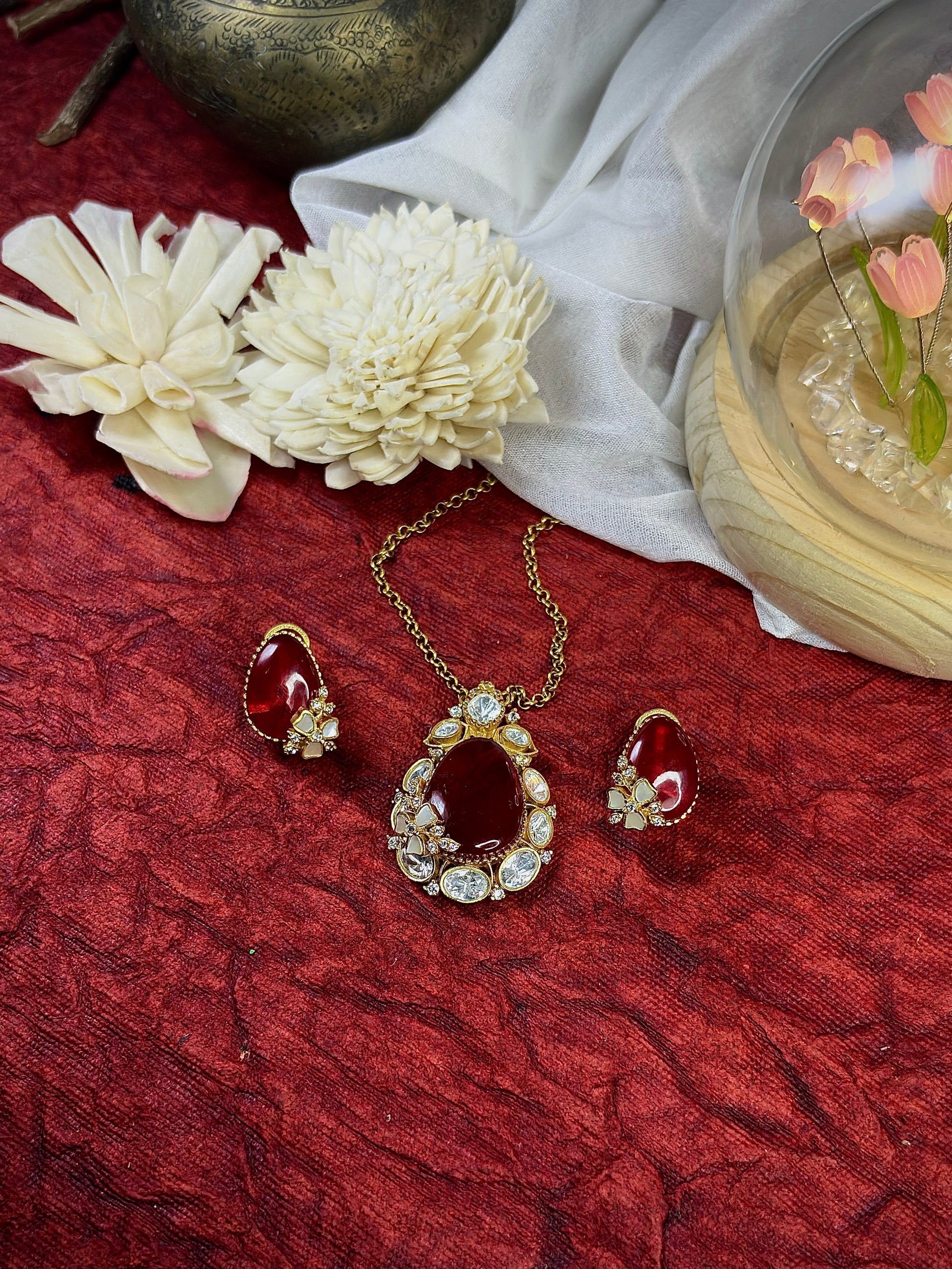 A radiant pendant set with a rose center stone surrounded by glittering crystals, offering a luxurious and feminine touch for special occasions.